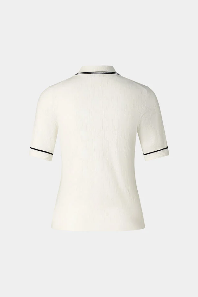 Разполага с оребрена поло яка и маншети, къса закопчалка с копчета BOGNER и раирани детайли на яката и маншетите