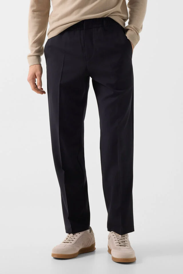 Еластична талия с отвори за колан до 4,5 см, два странични джоба и заден джоб
