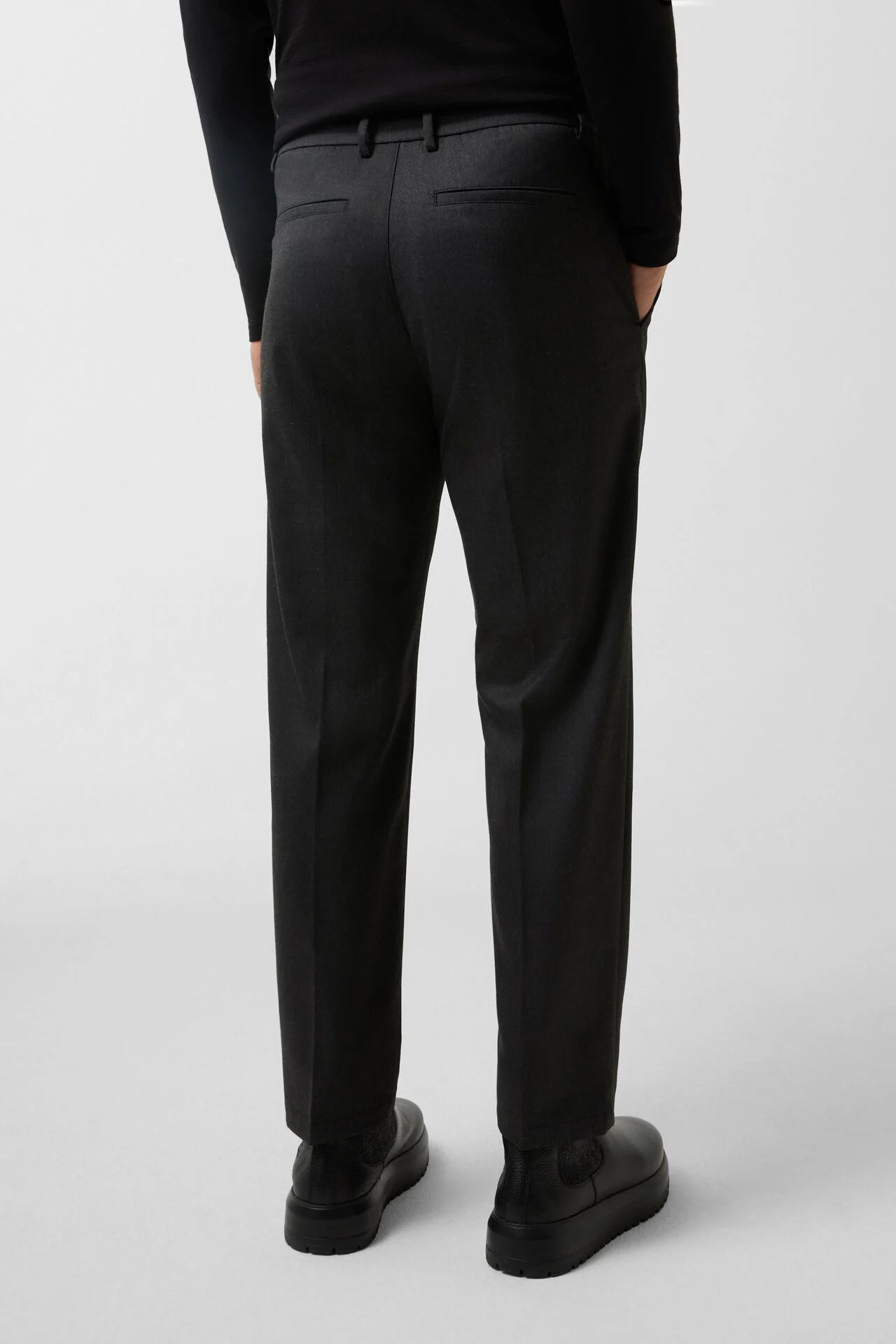 Панталони в класически силует и прави крачоли, завършени с фино зашити краища