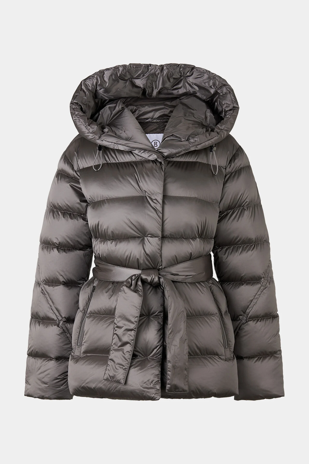 Пухените найлонови панели придават модерен обем, допълнени от релефен хардуер и апликиран подпис