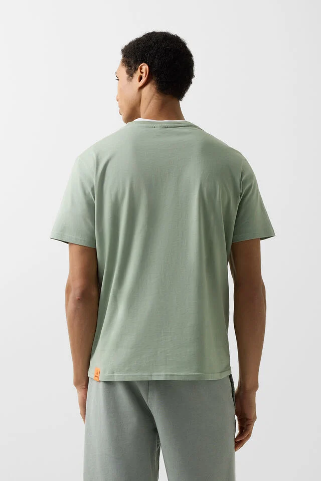 Тениска с прав силует и кръгло деколте с рипсен кант, с FIRE+ICE принт на височината на гърдите