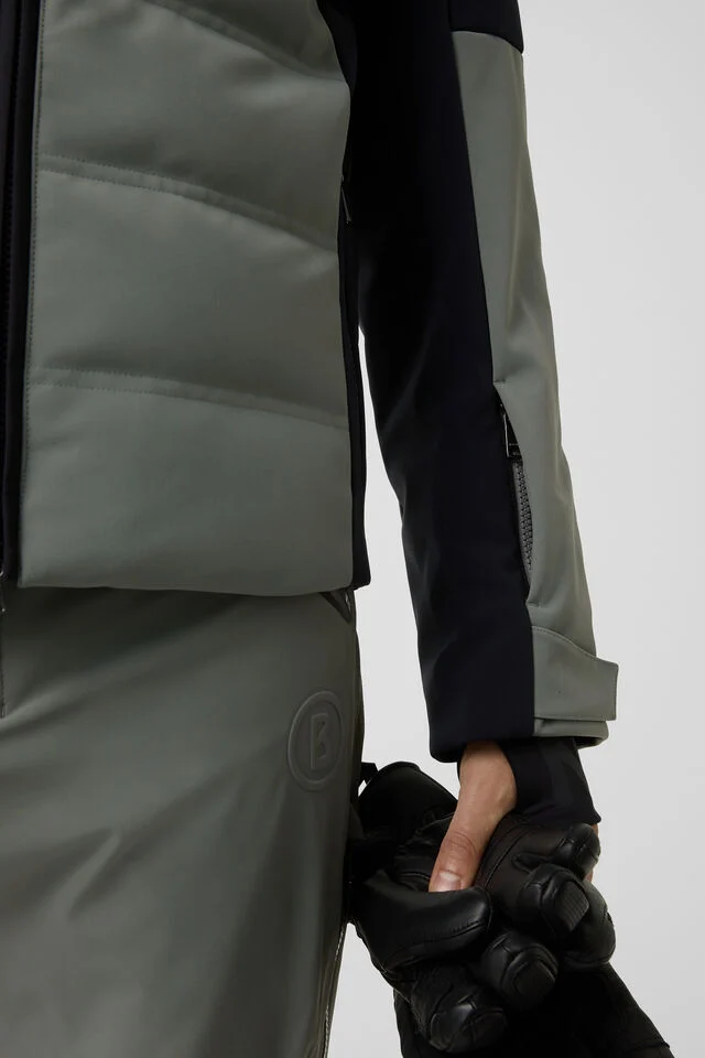 Дългите ръкави са завършени с маншети с велкро закопчаване и практична примка за палец, акцентирана с лого, а централният двупосочен цип с характерната B-образна закопчалка е подплатен с калъф BOGNER за допълнителен комфорт и защита