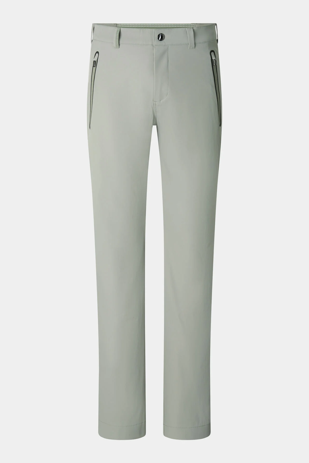 Спортен панталон в прав силуетн с BOGNER принт на гърба, закопчава се с цип, копче, два странични джоба с цип и два задни джоба с анти-слип силиконова лента, допълнително Y-лента на гърба за стабилност, изработен от лек, водоотблъскващ твил с 4-посочна механична еластичност, с GRS сертификат, с Durable Water Repellent DWR C0, без умишлено добавяне на PFAS вещества за безопасна и устойчива водоотблъскваща функционалност, внимателната поддръжка гарантира дълготрайност и безупречни свойства на материала