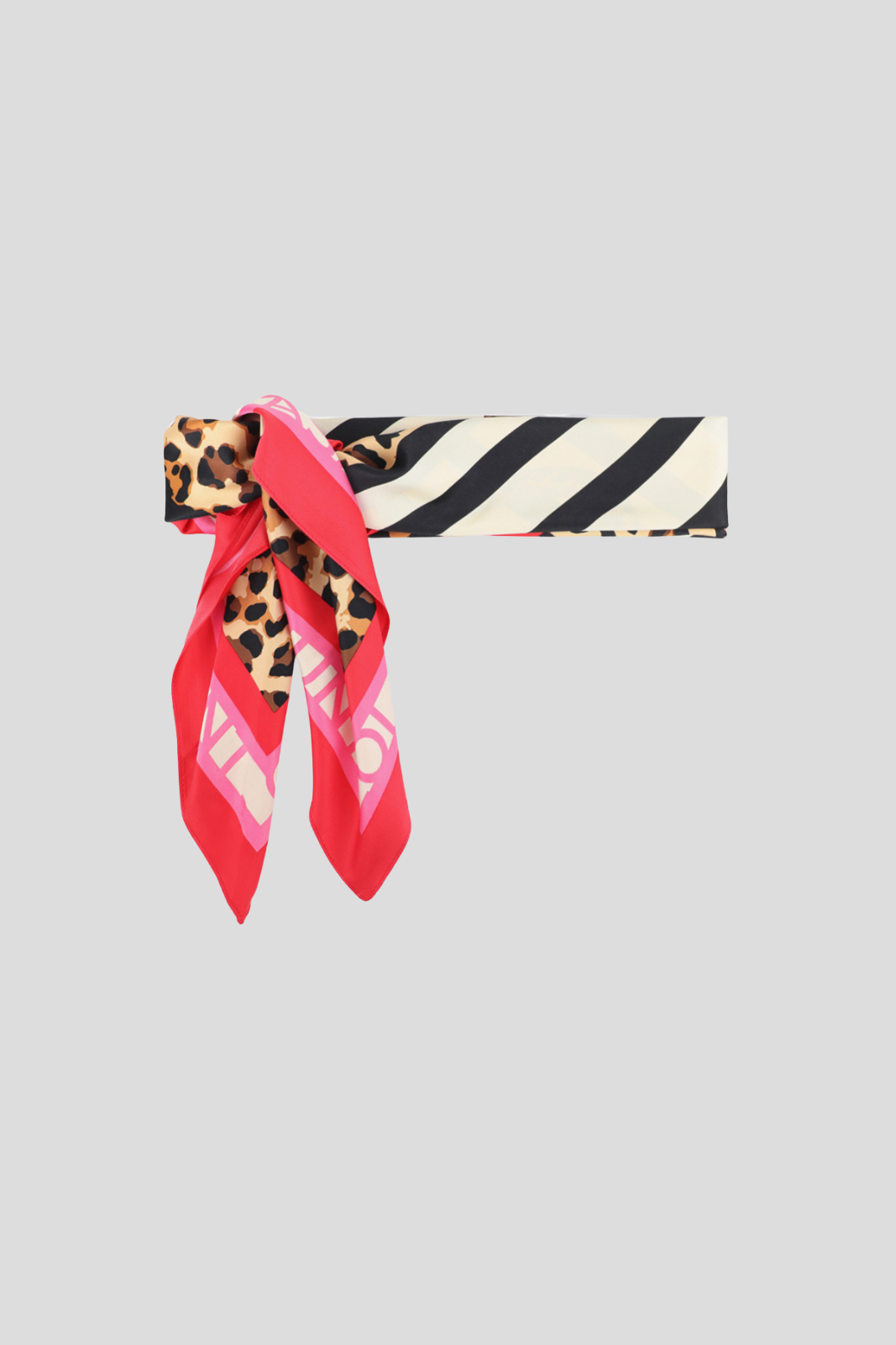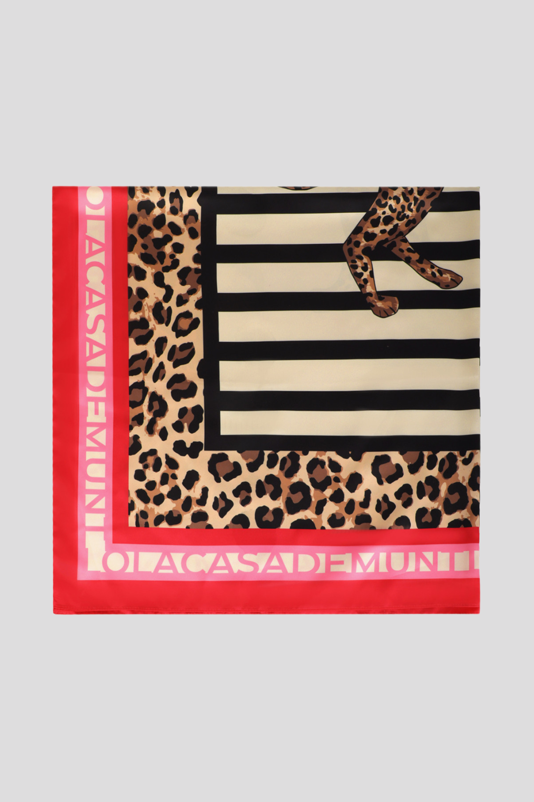 Шал от сатен с уникален дизайн, комбиниращ райета и леопардов принт