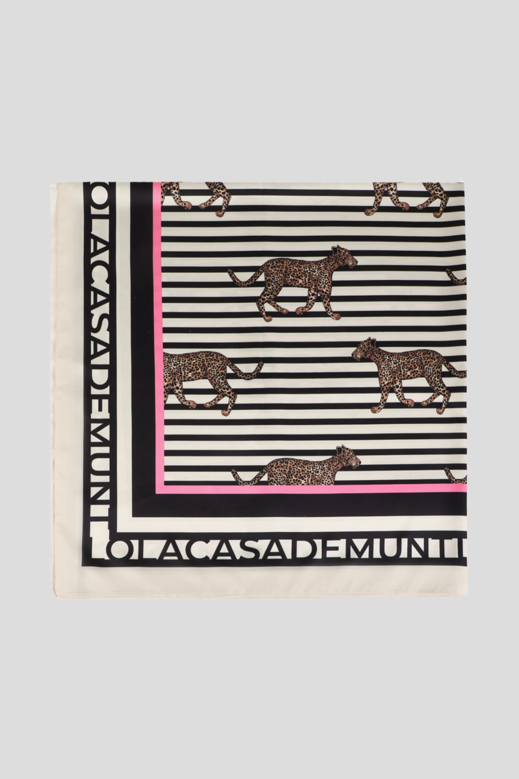 Шал от сатен с уникален дизайн, комбиниращ райета и леопардов принт