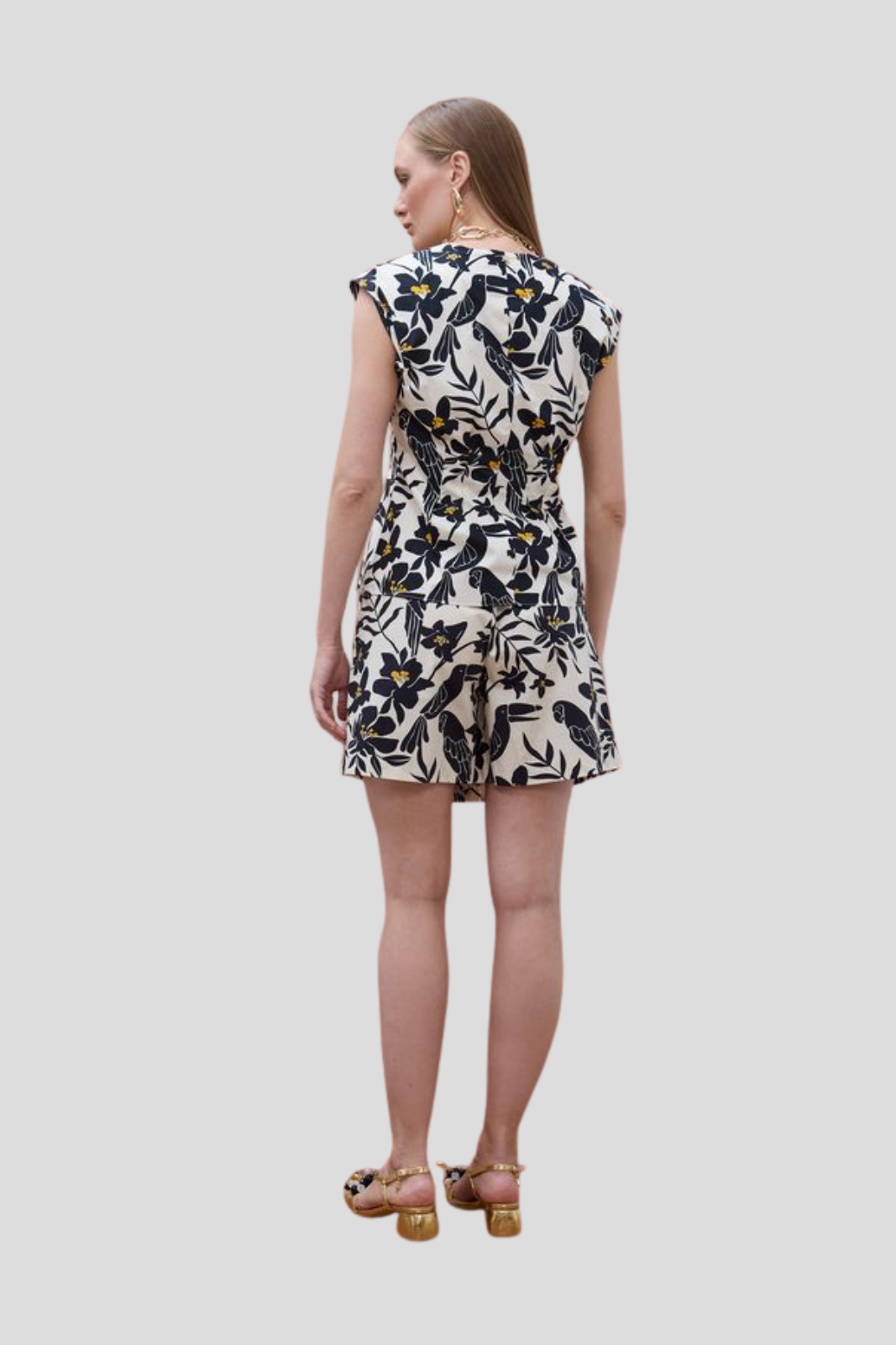 Дамски топ с прав силует, обогатен с елегантен тропически мотив — съчетание на лекота, свежест и модерна естетика