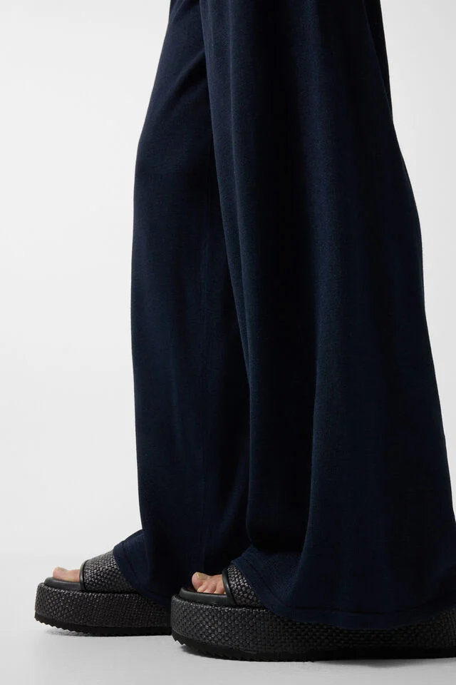 Панталони с прав силует, подчертани с подгъви с тесни маншети и прикрепена оребрена талия за изтънчен силует и комфортно прилягане
