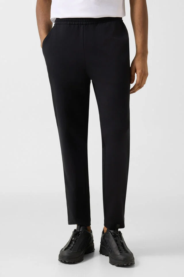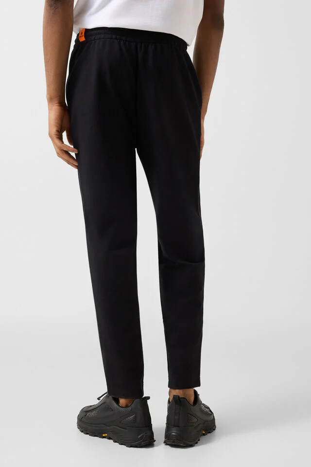 Панталони в прав силует с еластичен колан с вътрешна връзка, два странични джоба, отразяващи лини по външния шев на крачола