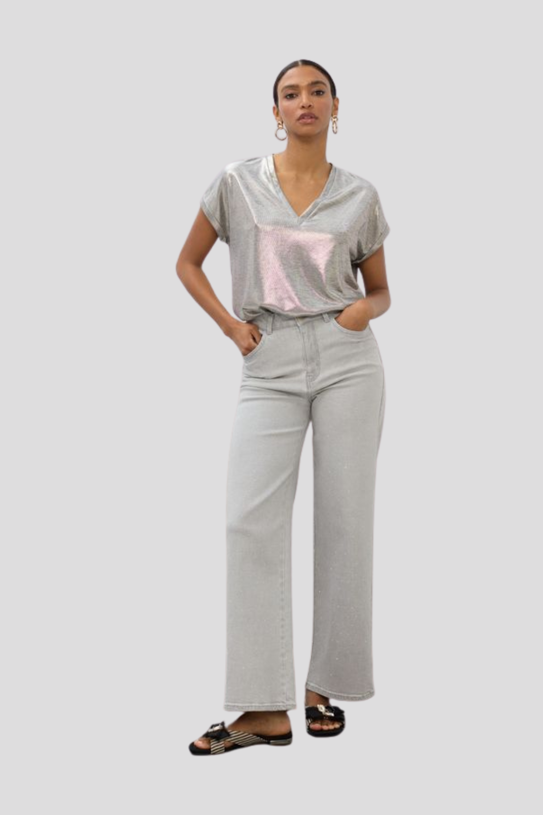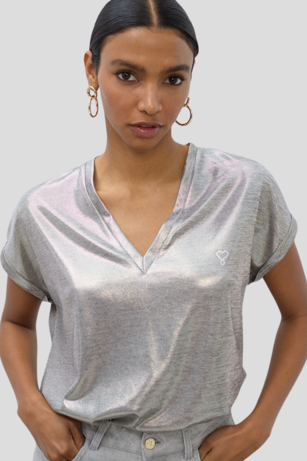 Елегантен плисиран топ с V-образно деколте в класически силует