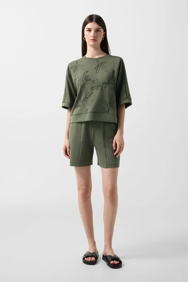 Ниско вшити 3/4 ръкави с маншети, носещи усещане за effortless luxury