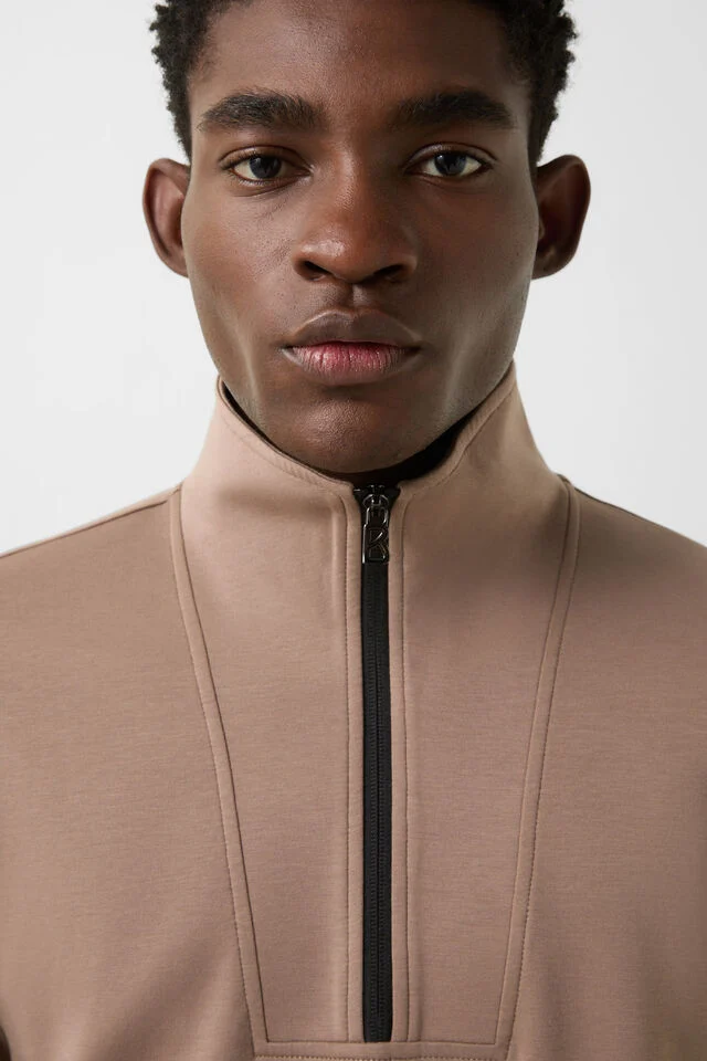 Пуловер в прав силует, висока яка, дълги ръкави с прикрепени оребрени маншети