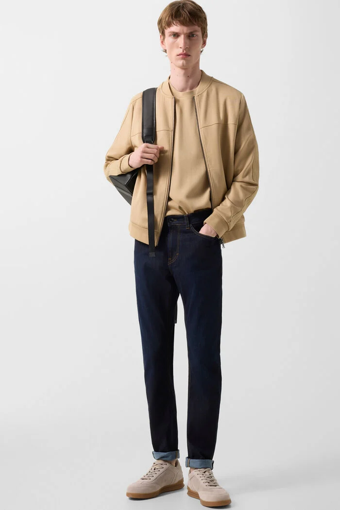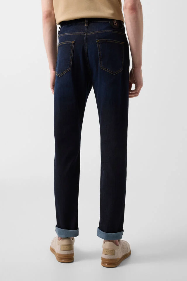 Релефните нитове с лого и кожената нашивка с B-етикет придават характерния подпис на BOGNER