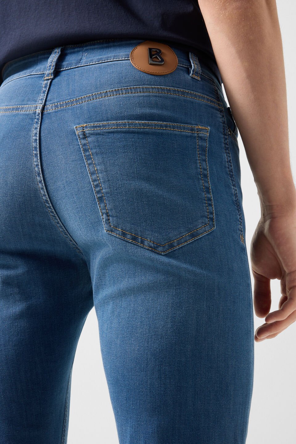 Коланът до 4,5 см осигурява класическа функционалност, допълнена от петджобен дизайн – два странични джоба и два задни джоба