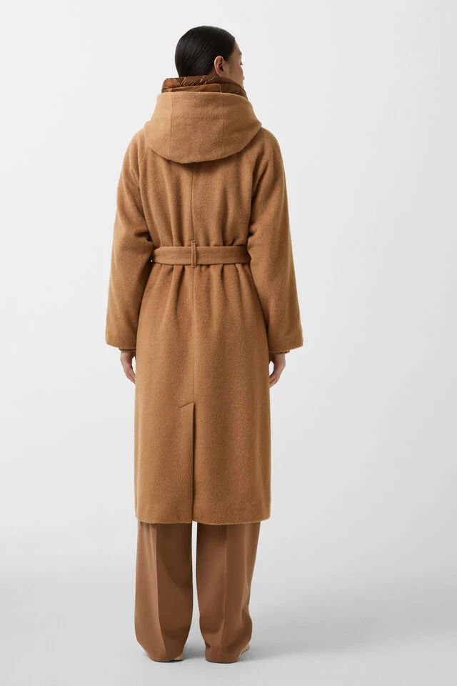 Затоплящата подплата от патешки пух гарантира комфорт и защита при студено време, а подгъвът с цепка отзад осигурява свобода на движение и лекота при носене.