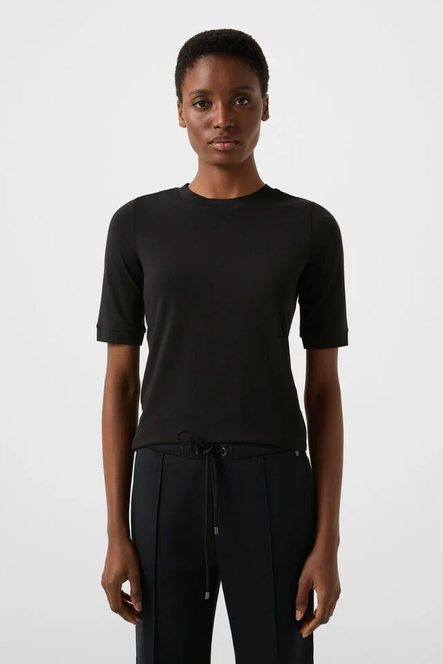 Приложен знак B е позициониран на височината на подгъва, а оребреният подгъв със странични цепки придава фин завършек и подчертава цялостната изтънченост на модела