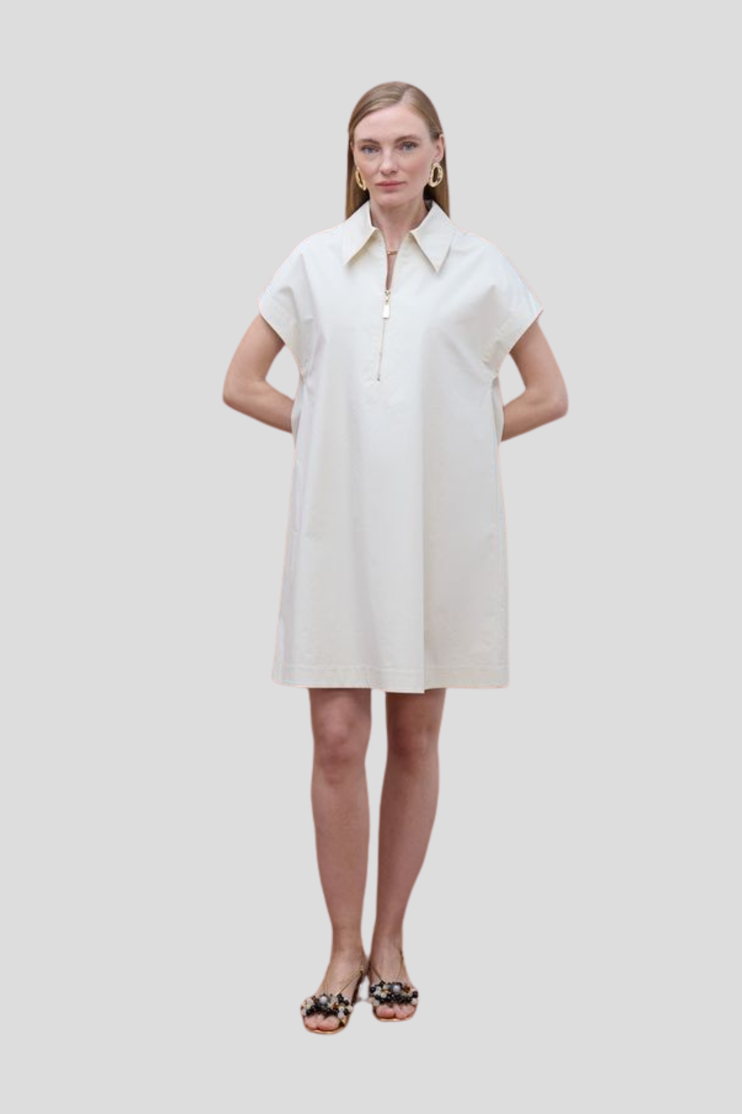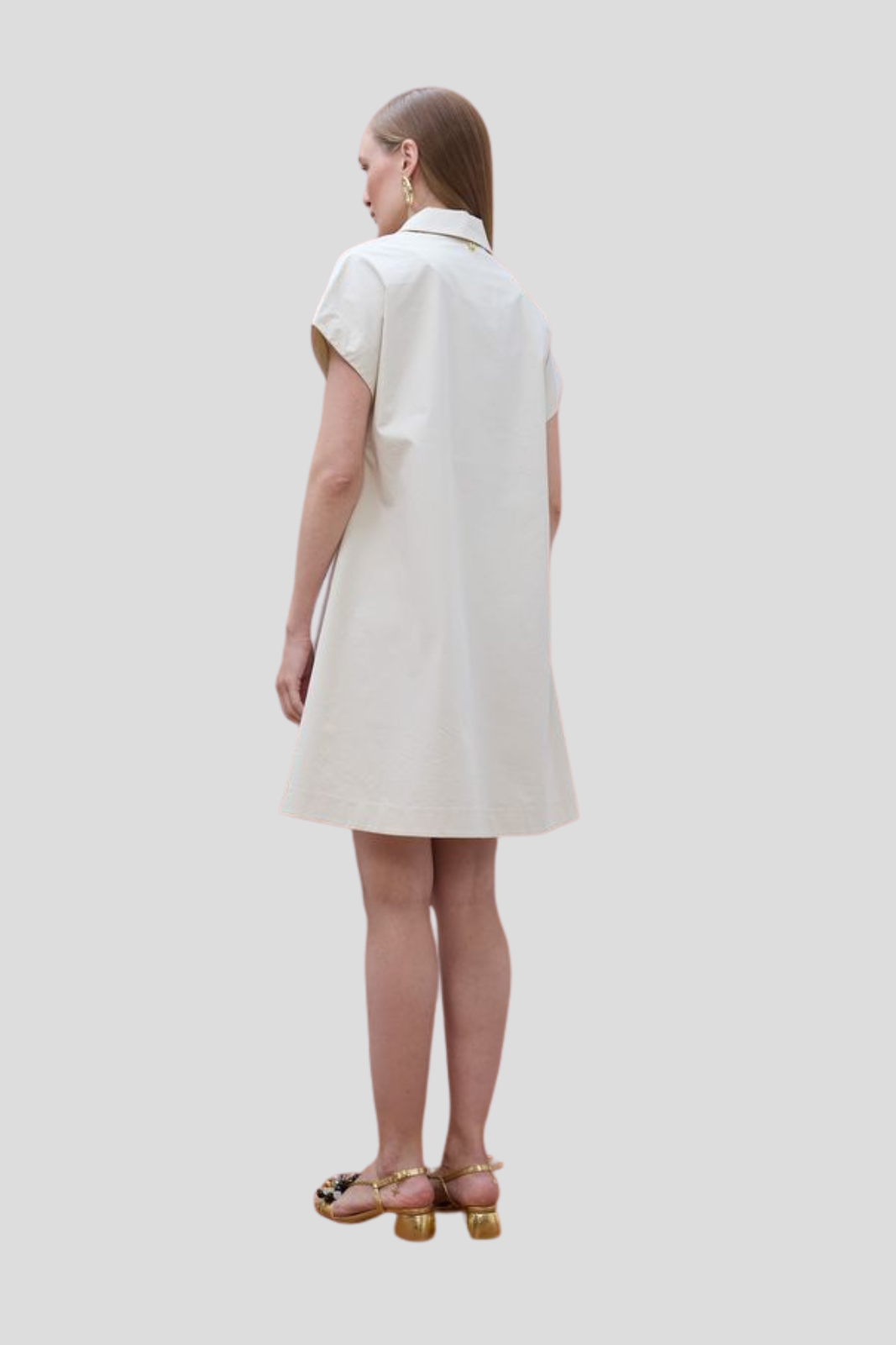 Рокля в прав силует, поло яка и къси ръкави
