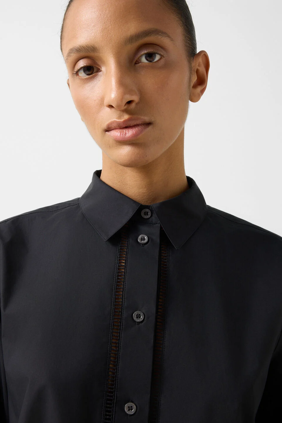 Ризата е с леко удължен заден подгъв за елегантно движение