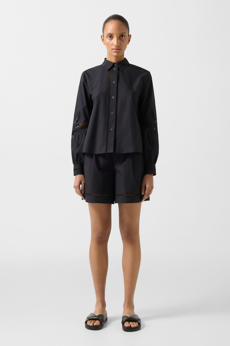 Дълги балонни ръкави с маншети и копчета, непрекъсната закопчалка с копчета BOGNER от седеф.