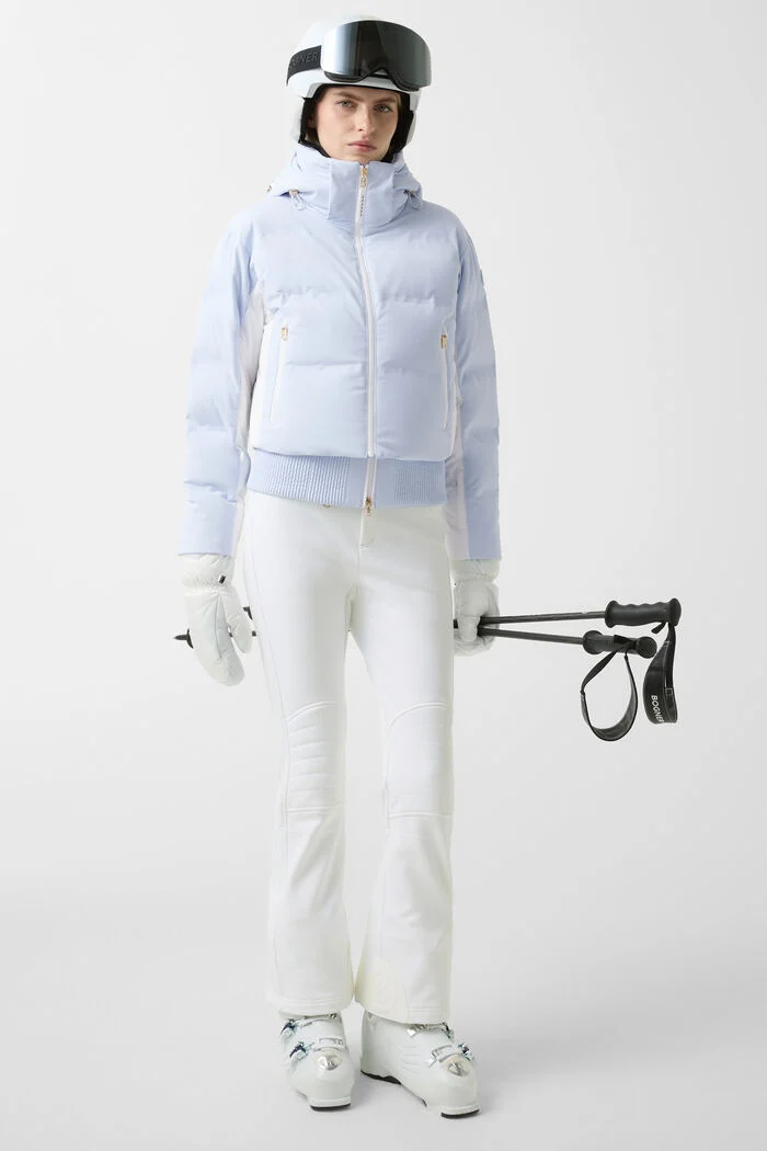 Ватирано ски яке 2 в 1 в класически силует подплатена яка с изправена талия сваляща се качулка с връзки за стягане стопер и цип с щампа BOGNER дълги ръкави маншети на ръкавите с вътрешна еластична лента за палеца с дизайн на лого закопчава се с B-цип отзад панел с лого джоб за ски карта с цип на ръкава два странични джоба с цип вътрешен джоб водоустойчиви ципове Aquaguard B-гумена нашивка на ръкава вътрешна панделка с лого и кафяв цвят плат с плавен хастар и принт на пламъци сваляща се плюшена жилетка с гладки технологични части яка с изправена талия подплатен двупосочен цип странични джобове с кант и подгъв с прикрепен оребрен маншет като снегозащитна маншета трайно водоотблъскващо покритие воден стълб 20 000 мм дишаемост 20 000 г на м² за 24 часа затопляща подплата от гъши пух и технологични влакна подгъв с връзки за стягане и стопер дължина на гърба 50 см