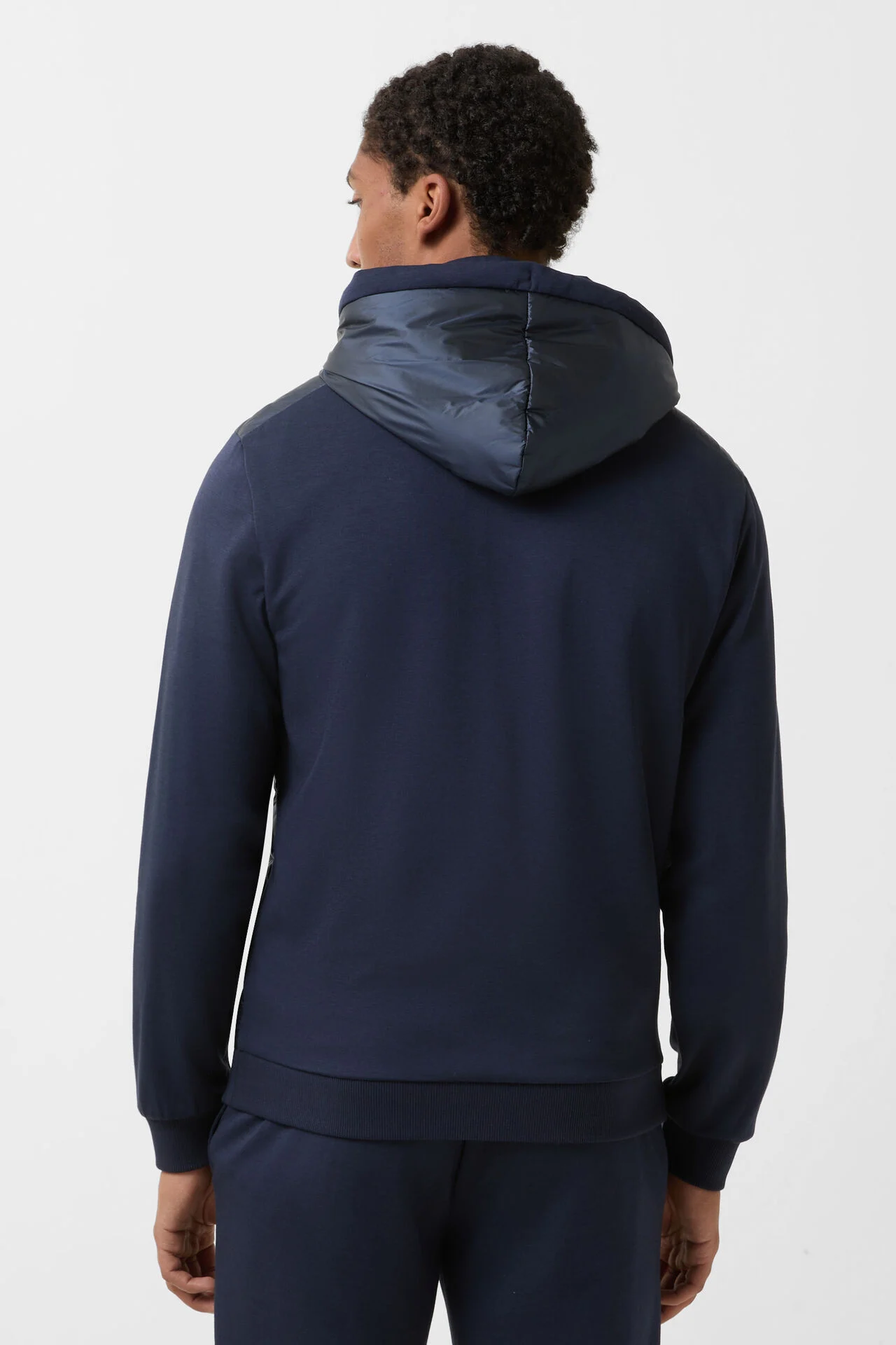 Изправена яка и фиксирана найлонова качулка с връзки за стягане и корда за адаптивна защита