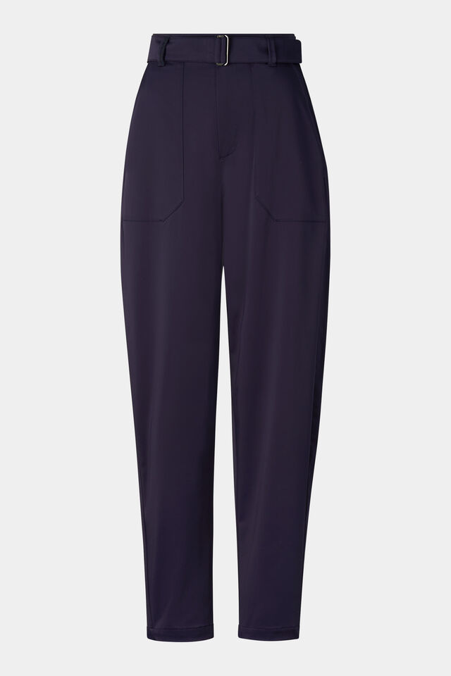 Панталон в прав силует, талия с коланени халки и еластична Y-лента с орнаментирана краища, закопчава се с таен хук и вътрешен бутон, допълнително с цип отпред и контурен бутон, два странични джоба с цип и два задни джоба, дискретен лого принт на десния заден крачол и етикет с лого на десния преден колан, изработен от лек, водоотблъскващ твил с 4-посочна механична еластичност, с GRS сертификат, с Durable Water Repellent DWR C0, без умишлено добавяне на PFAS вещества за безопасна и устойчива водоотблъскваща функционалност, внимателната поддръжка гарантира дълготрайност и запазване на качествата на материала