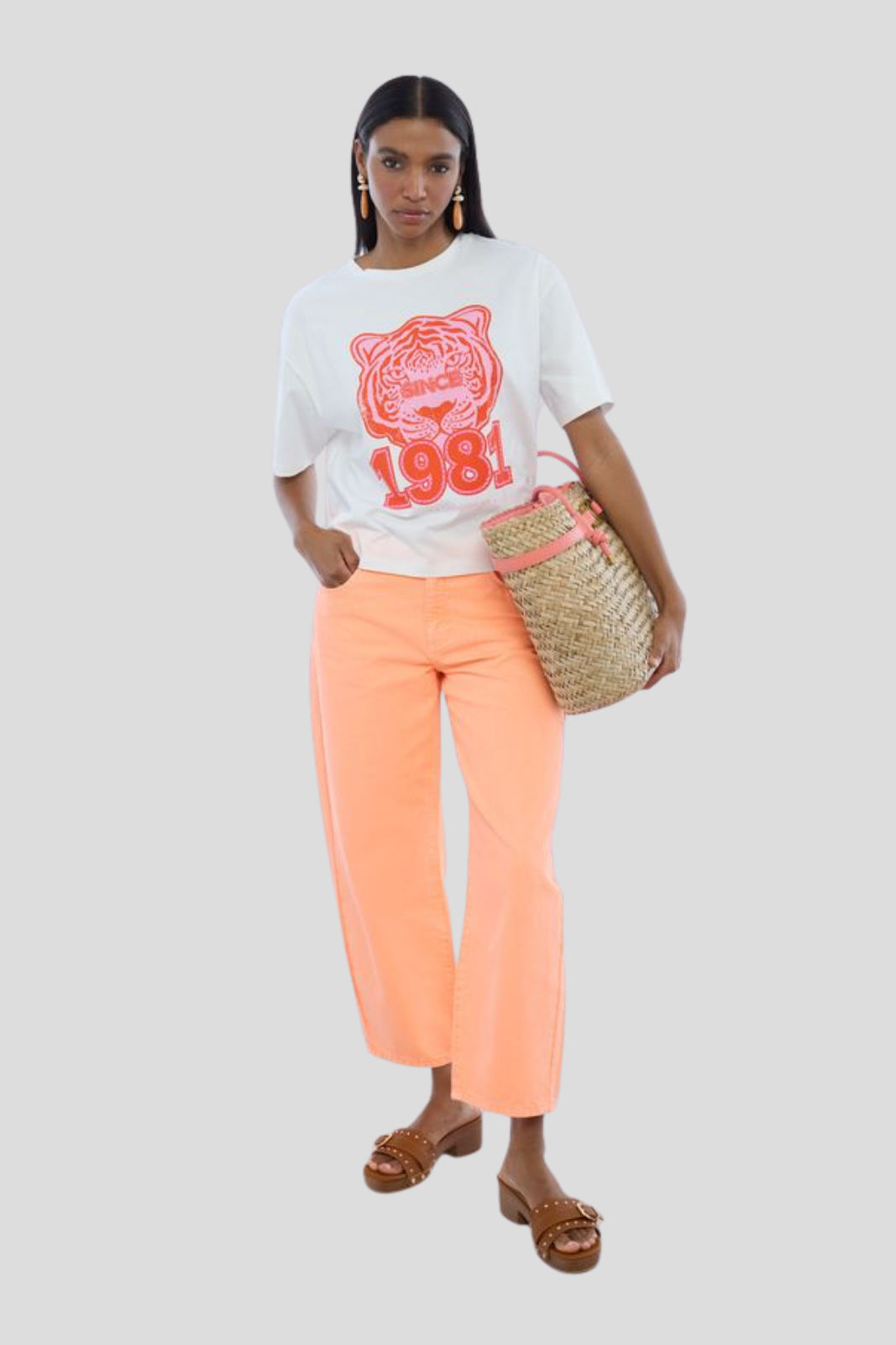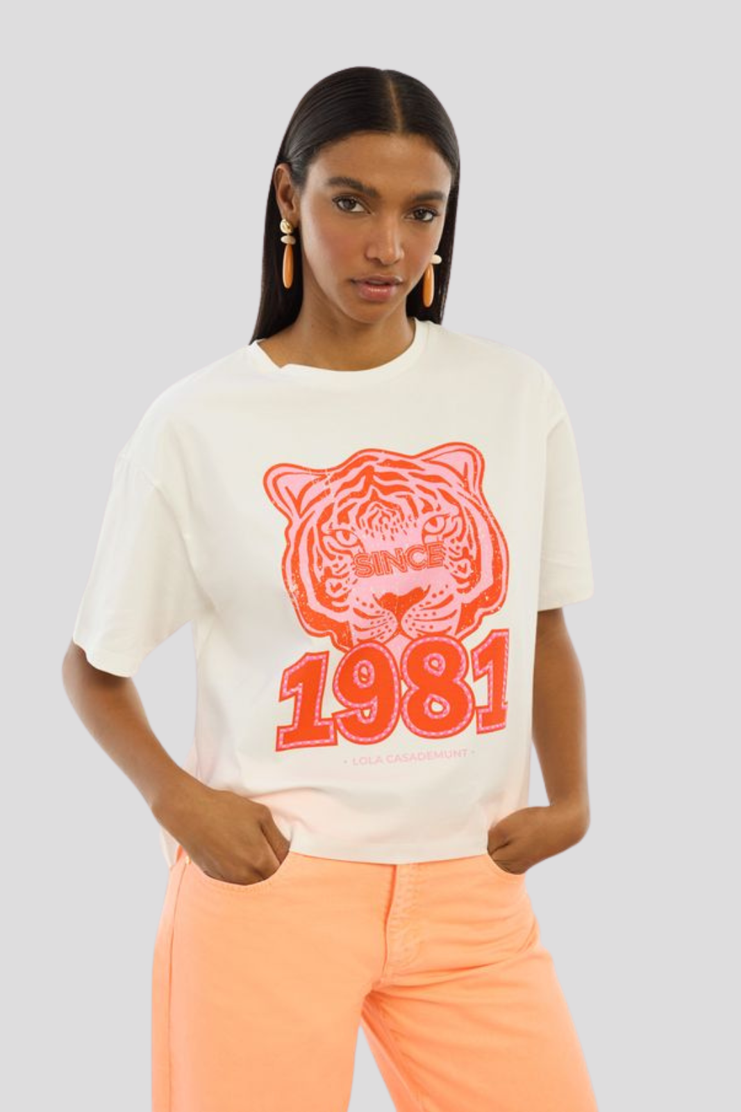 Тениска с тигров принт в прав силует, съчетаваща комфорт и модерен графичен акцент