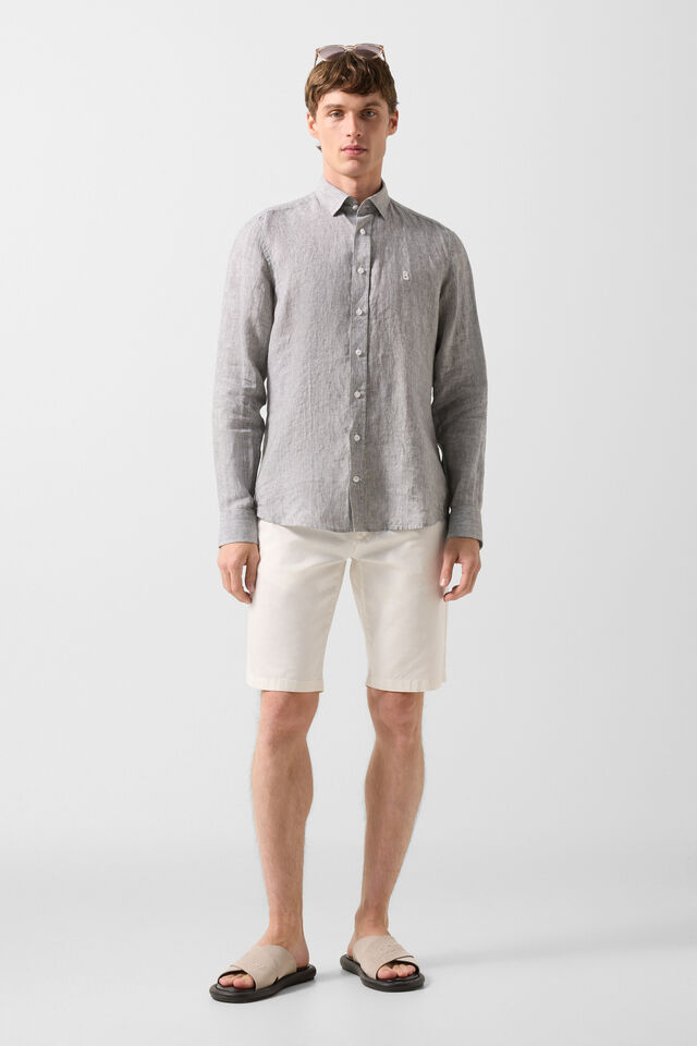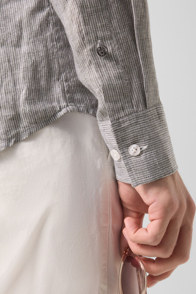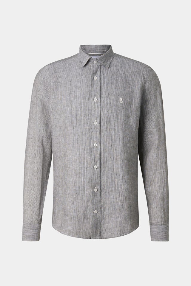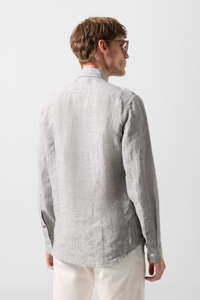 Ленена риза в Prime Fit с фин раиран дизайн и класически силует