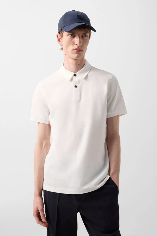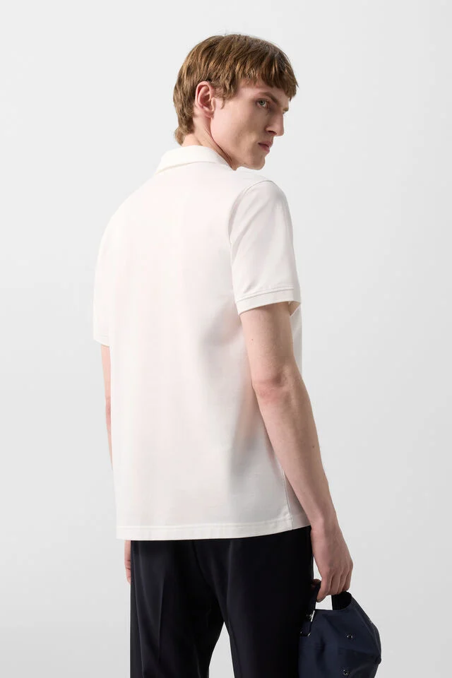 Тениска с класическа поло яка, с къси ръкави и оребрени маншети за изискан завършек