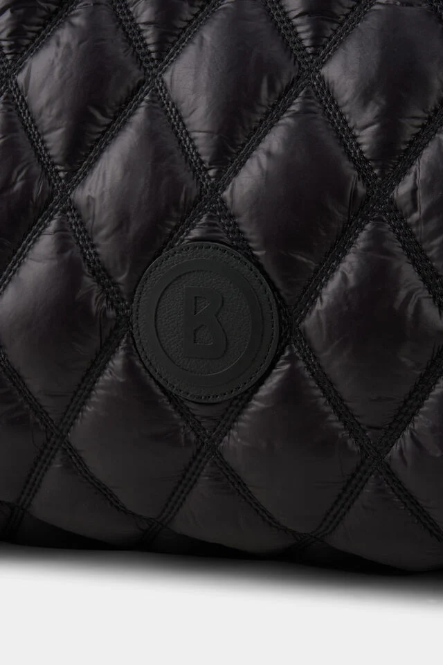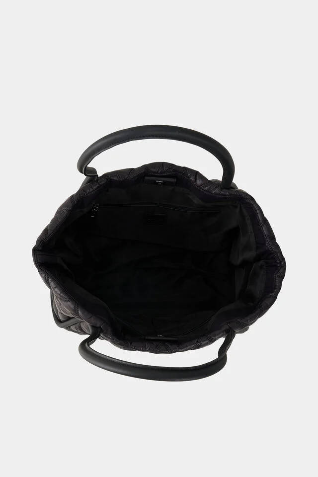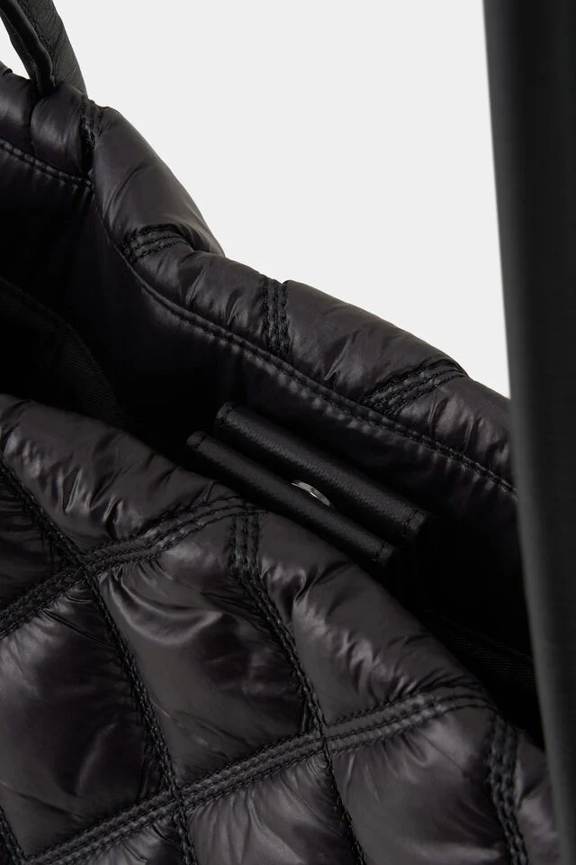 Елегантна чанта с диамантено капитониране, изработена от найлон и кожа