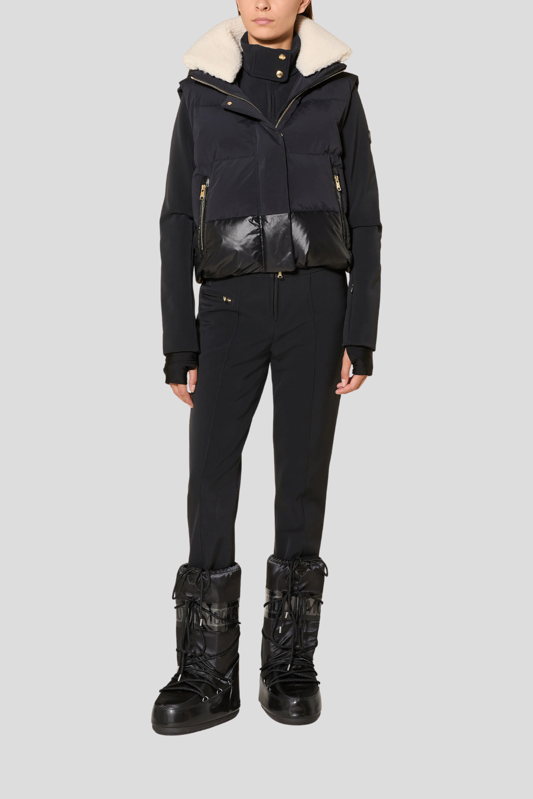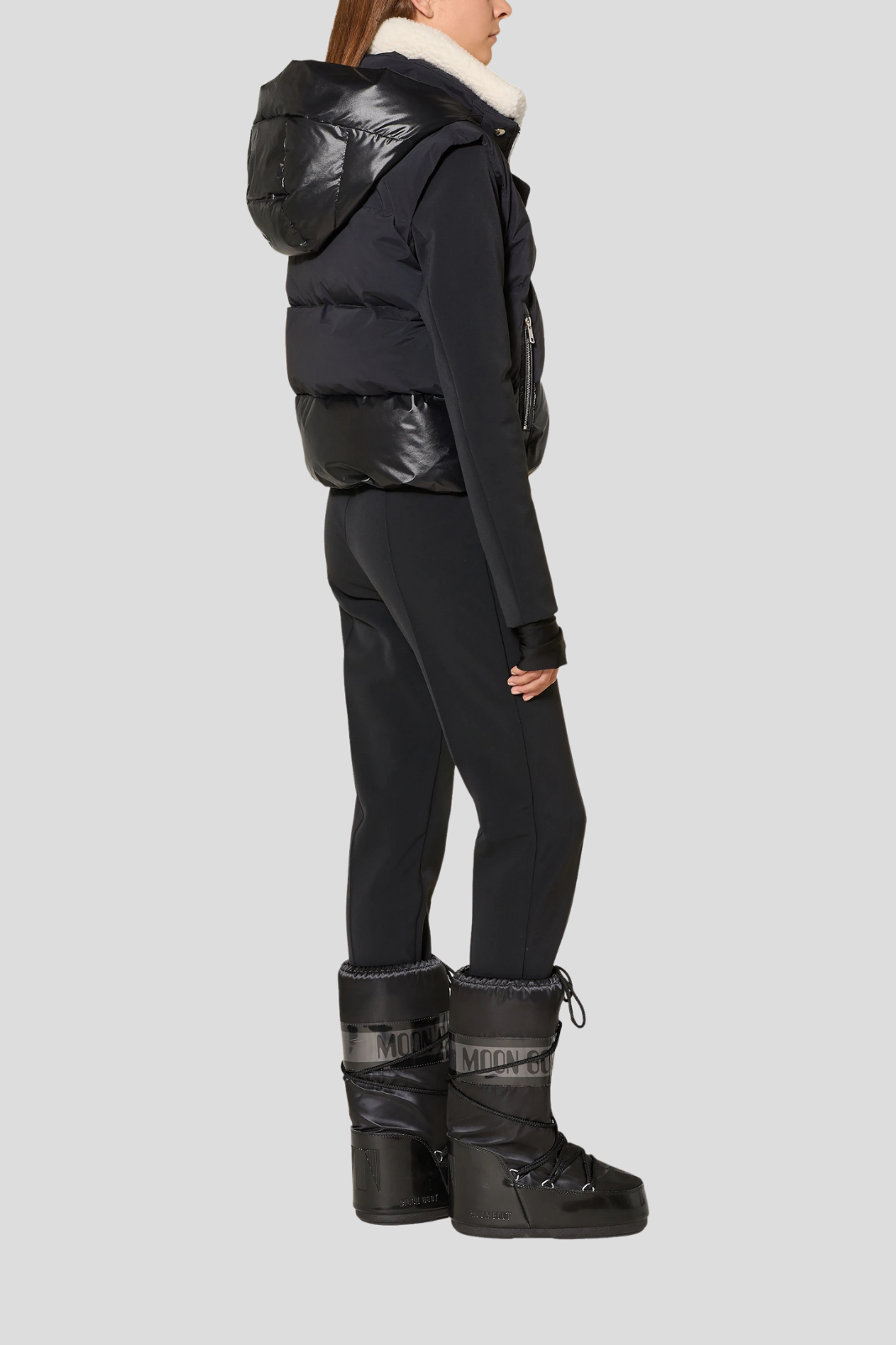 Предлага се в комплект: Пухен ски елек изработен от високотехнологична функционална материя, с пухено-перално пълнежно съдържание, което осигурява лекота и топлина