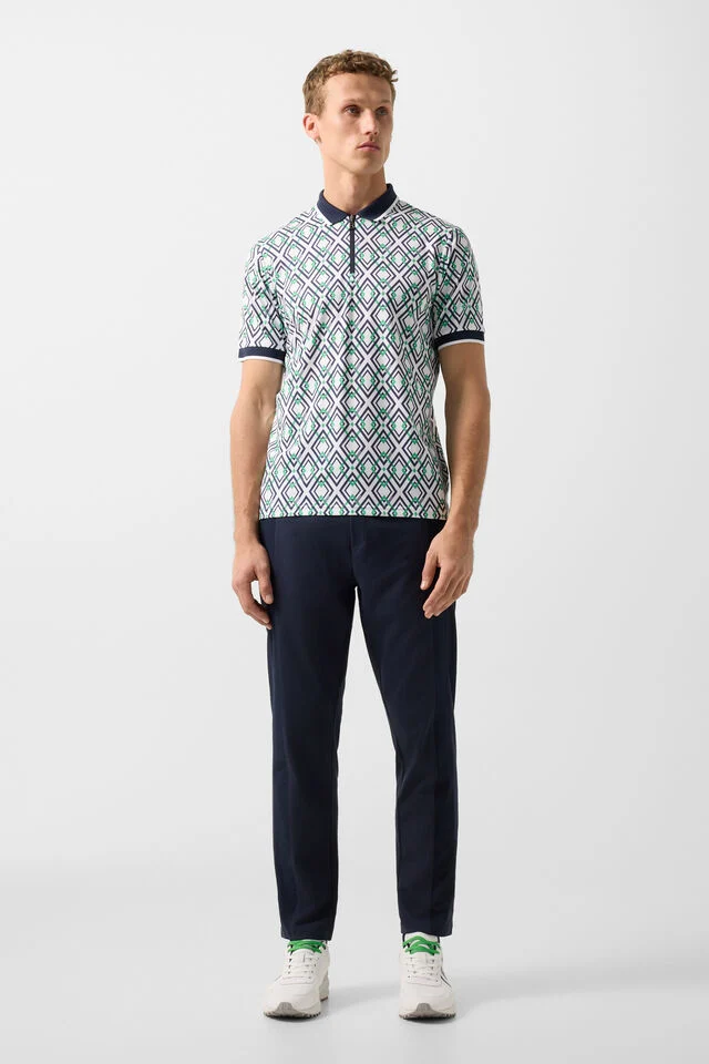 Класическа поло тениска с изискан B-print дизайн, с оребрена поло яка и маншети на ръкавите за фин детайл