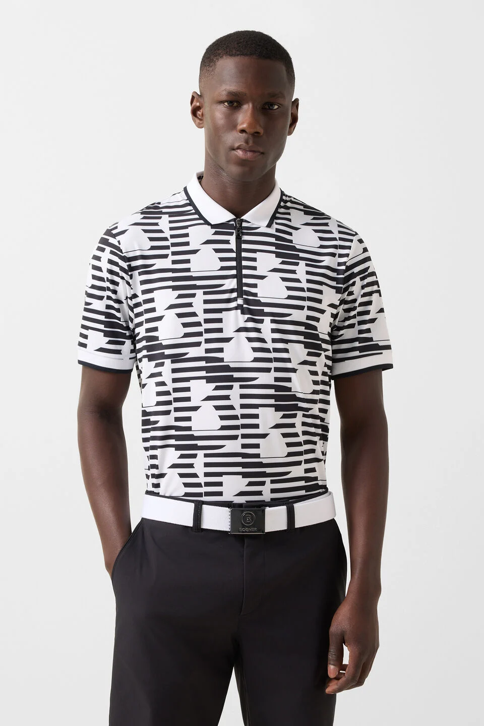 Класическа поло тениска с изискан B-print дизайн, с оребрена поло яка и маншети на ръкавите за фин детайл