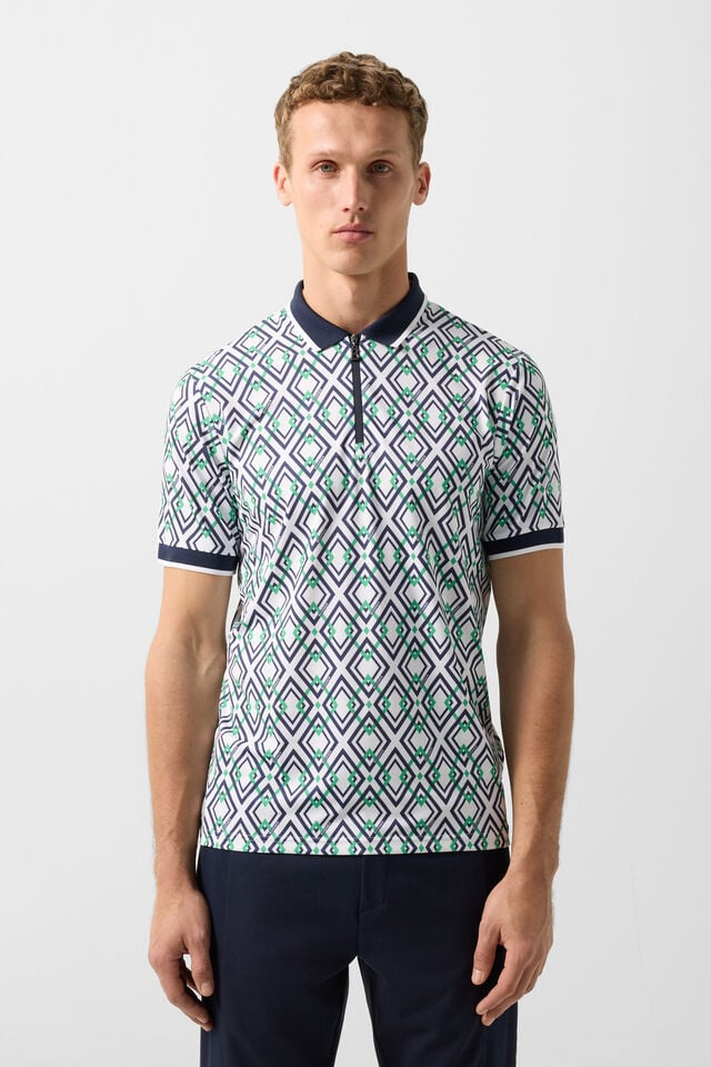 Класическа поло тениска с изискан B-print дизайн, с оребрена поло яка и маншети на ръкавите за фин детайл