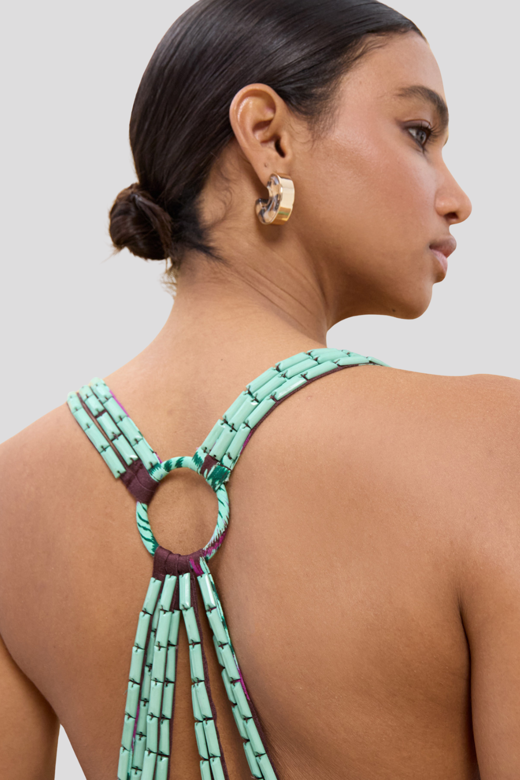 Класически силует и V-образното деколте придават свежест на визията