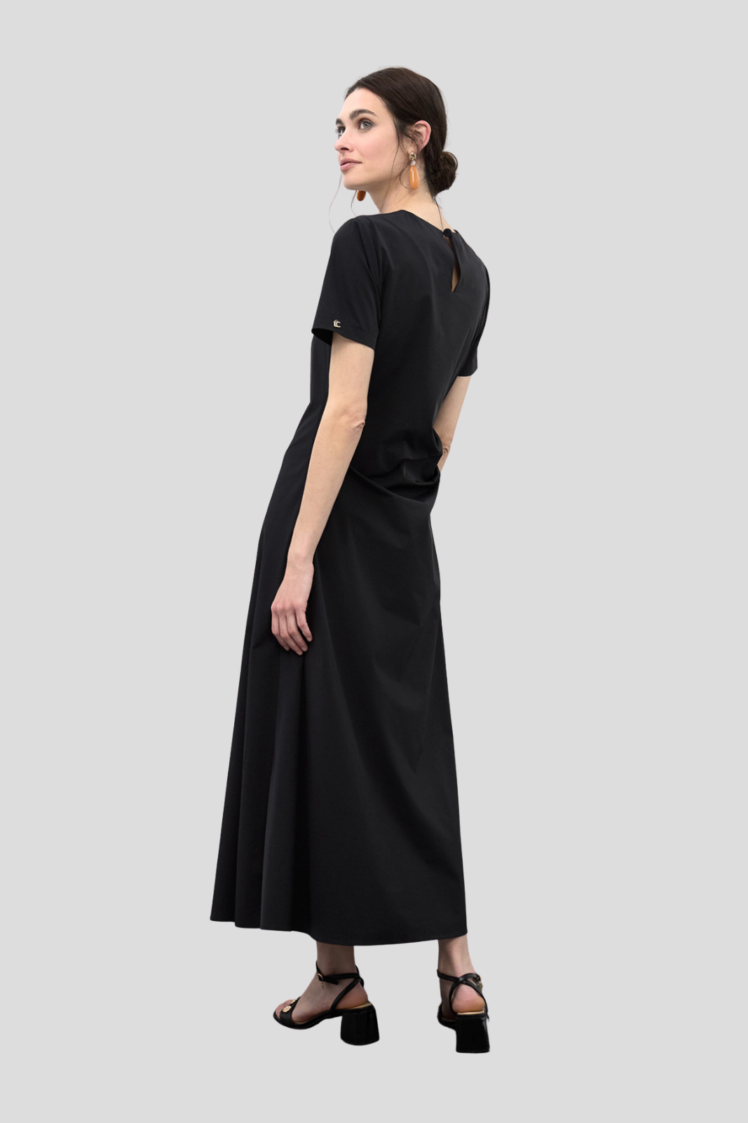 Моделът е с къси ръкави и набор в талията, подчертаващ силуета по изискан начин