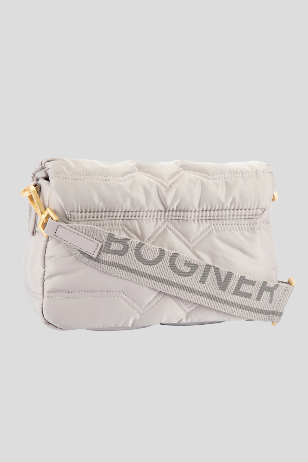 Регулируемата и подвижна презрамка с дължина 63 см е изработена от висококачествен текстилен материал, гарантиращ комфорт при носене, докато минималистичната конструкция и чистите линии подчертават елегантния и луксозен характер на чантата