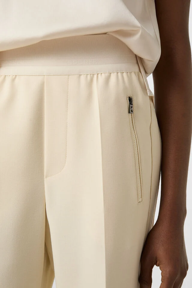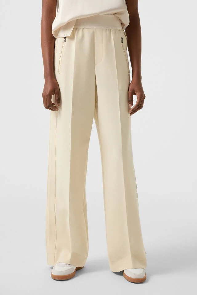 Панталон от джърси в класически силует и широк силует, с двойно зашити подгъви и загатнато закопчаване с цип