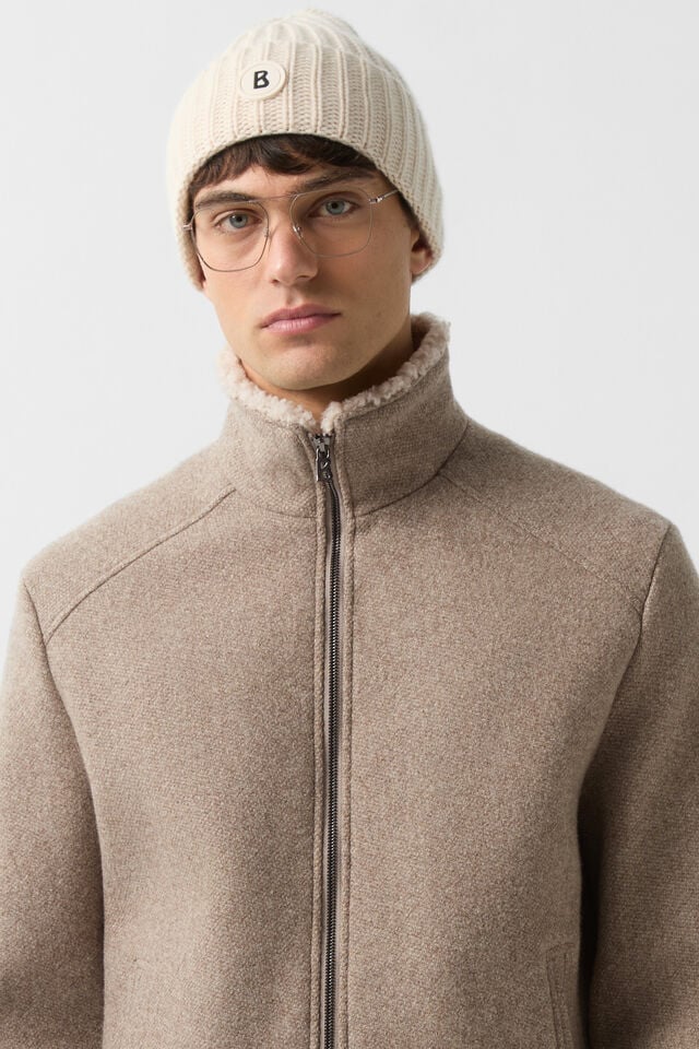 Меката вълнена текстура придава изключителен комфорт и усещане за топлина, докато контрастната вътрешна подплата на яката с ефект „шерпа“ подчертава премиум характера на модела